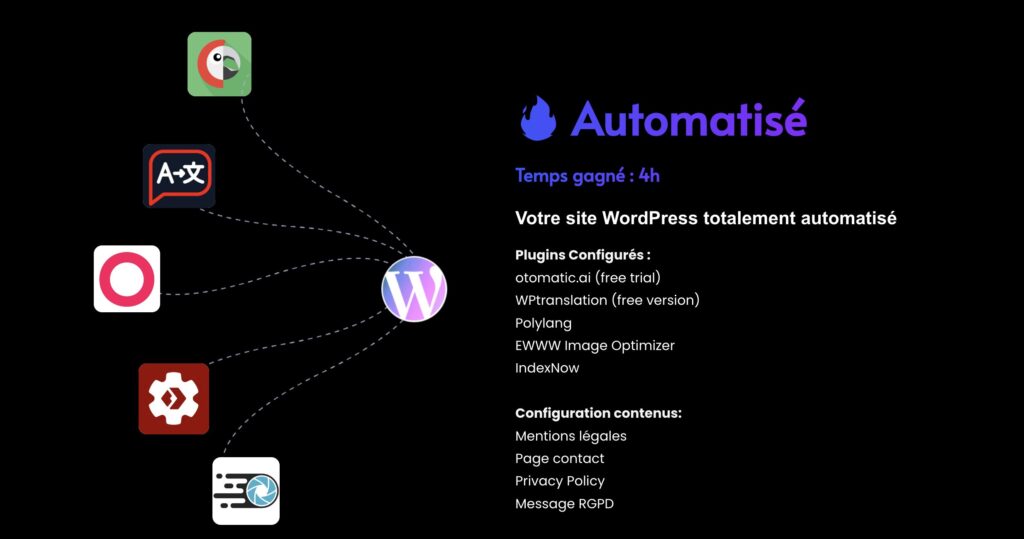 Votre site WordPress est entièrement configuré avec les plugins essentiels :